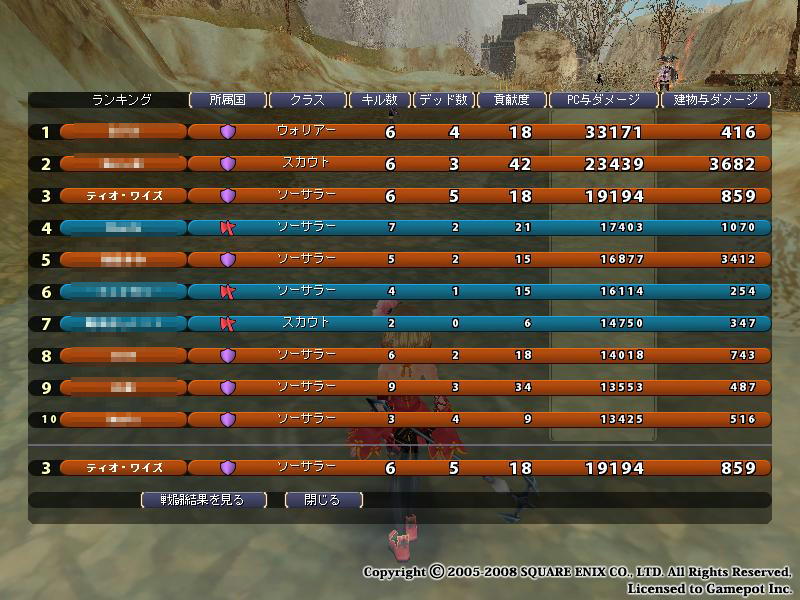 一方、ティオ・ワイズは雷ソーサラーで0キル0デッド対人与ダメ6000~12000のそれなりの活躍をする