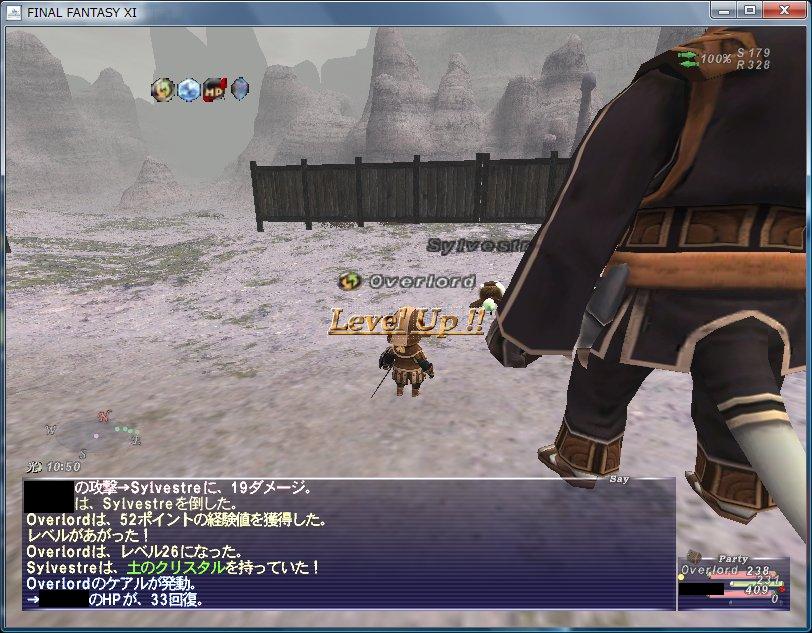 1匹を狩る。経験値477とギル477、タブを47葉ゲットしつつ、ゴブとかウサギとかマンドラを