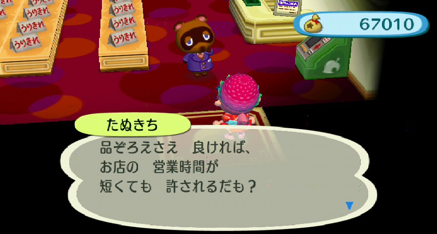 ハチと化石を売りにタヌキデパートに行ったら、帰り際に相談された。