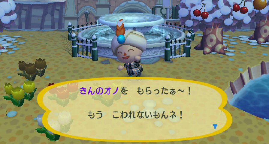 毎日コツコツ噴水にふつうのオノを投げ込んでいたら、とうとう今日金のオノをゲットできました。