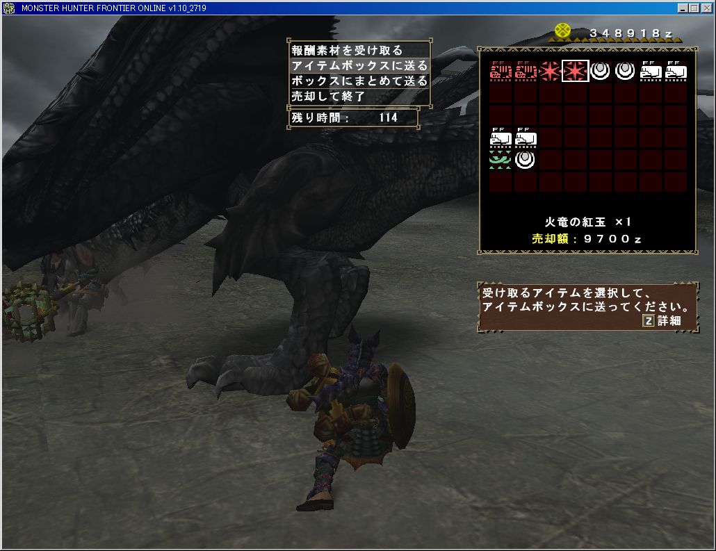 でも10分ちょっとで討伐完了。報酬で火竜の紅玉がでた!2個も!