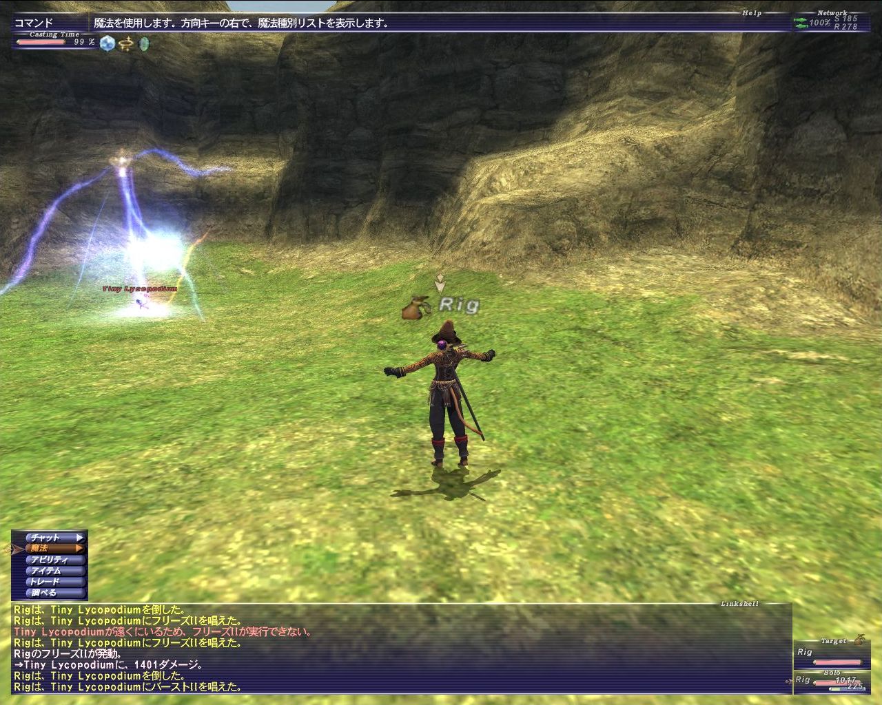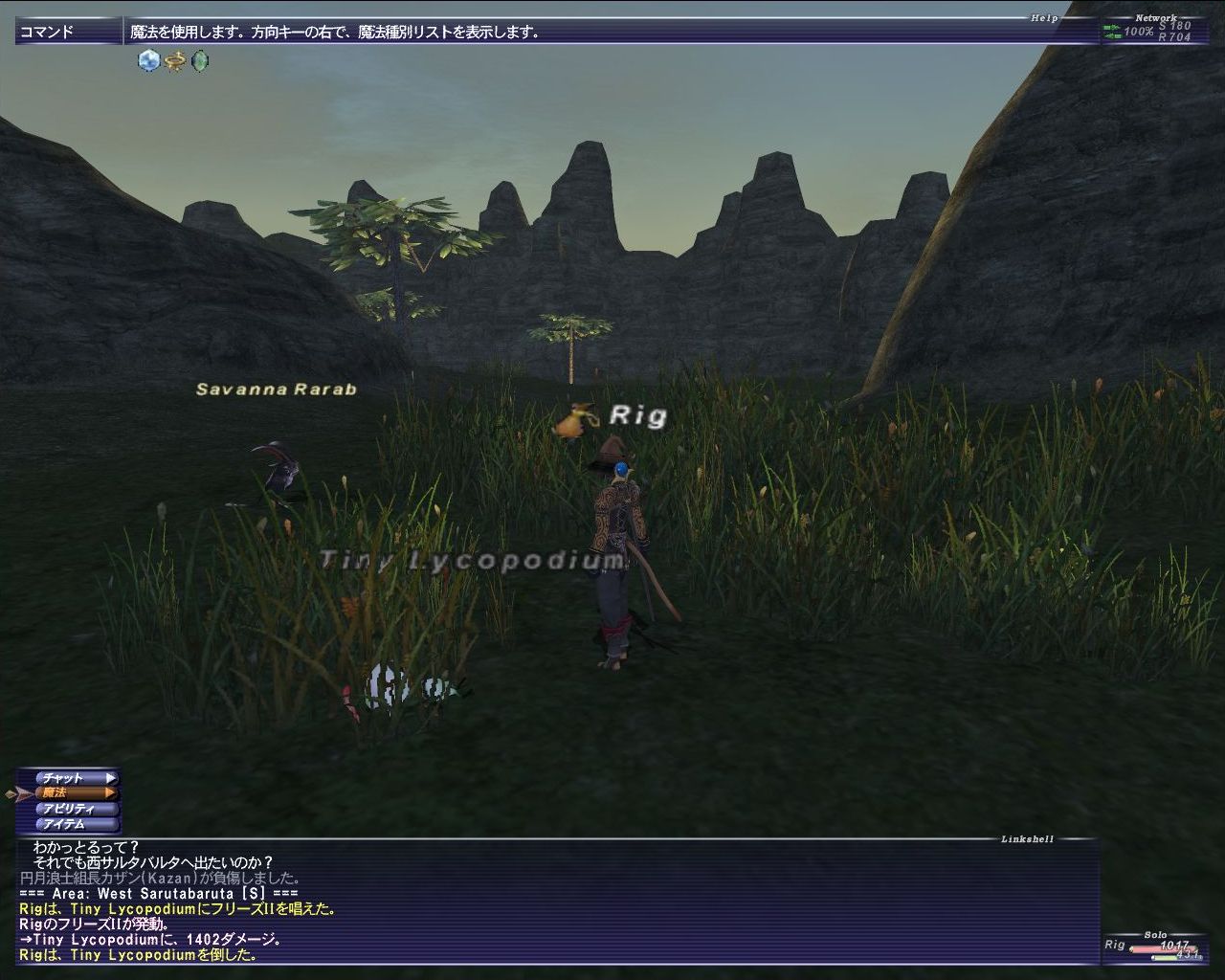 西サルタバルタ〔S〕でリコポン相手に試し打ち。氷魔法攻撃力UP無しで撃ったときのダメージは