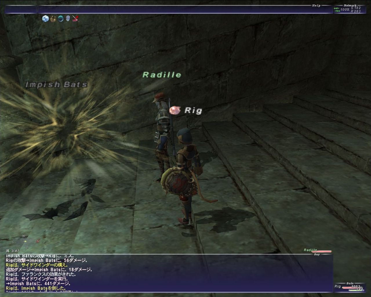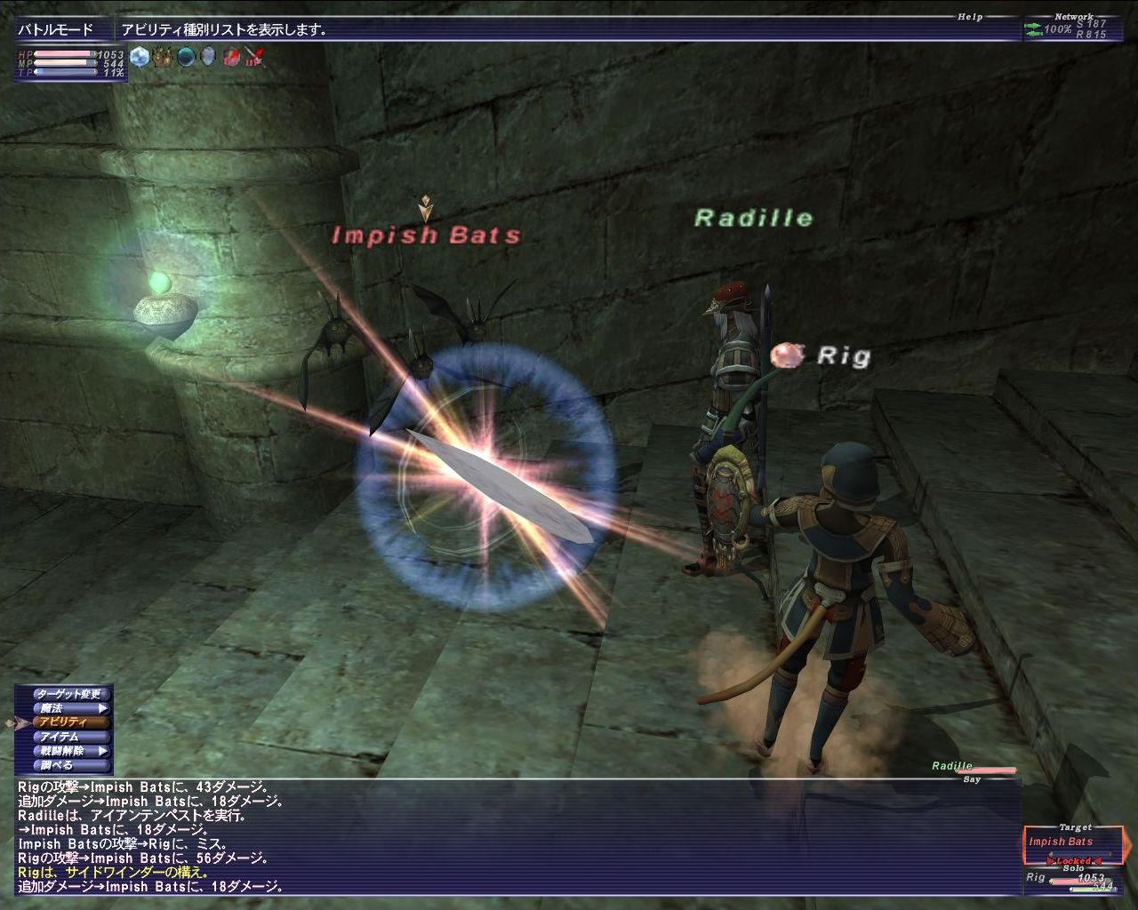 本来の威力を確認したいので1匹コウモリのWS:ソニックブームを食らわない内に撃つ>ミス