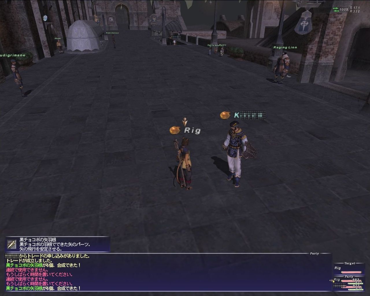その後、Kさんに頼まれて黒チョコボの矢羽根を6回分合成する。あと0.3で黒チョコボの矢羽根を使うゾーンを
