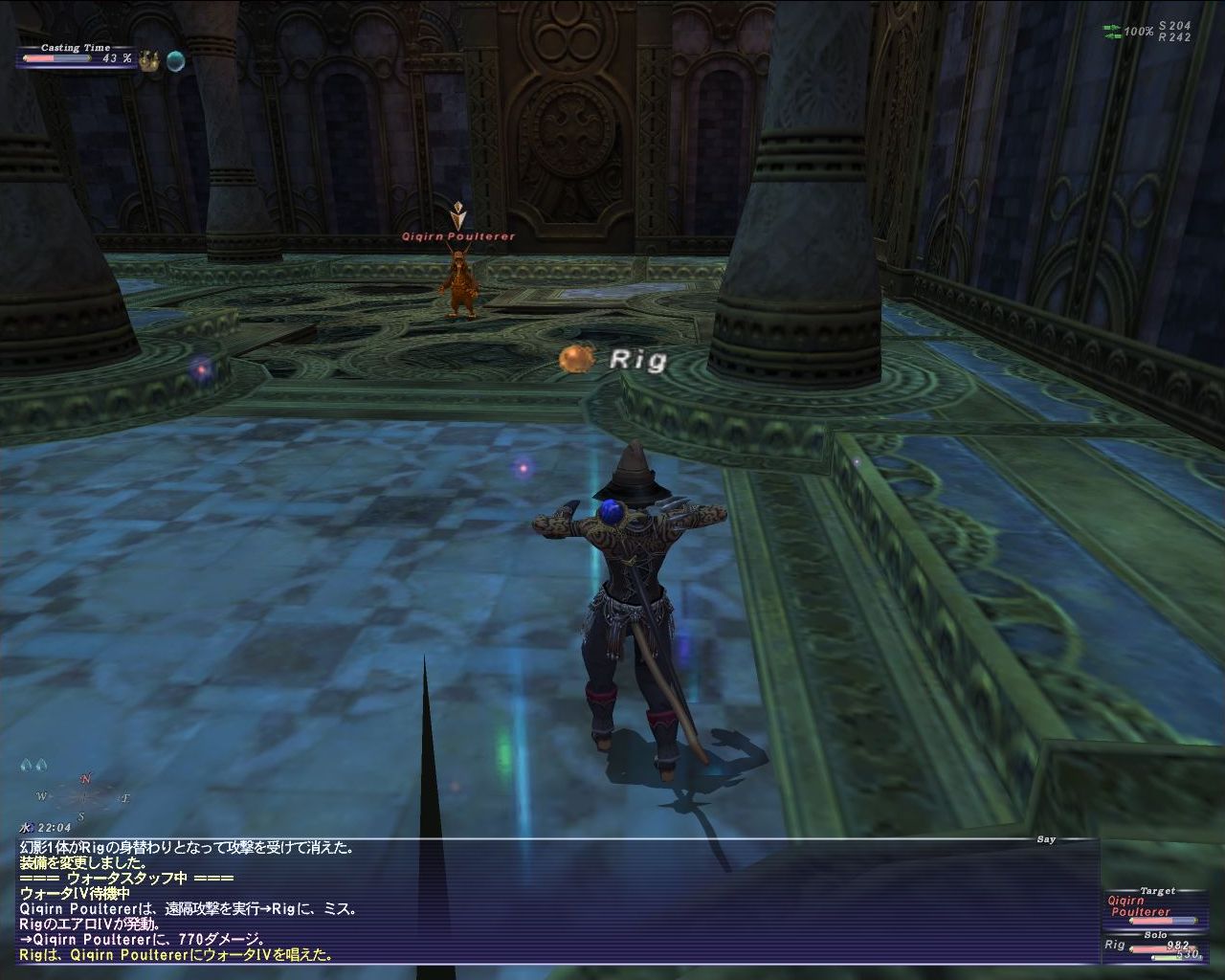 ヒーリングするときはちゃんとエラント胴と闇杖に持ち替える。IV系精霊魔法2発分のMPがたまったら、