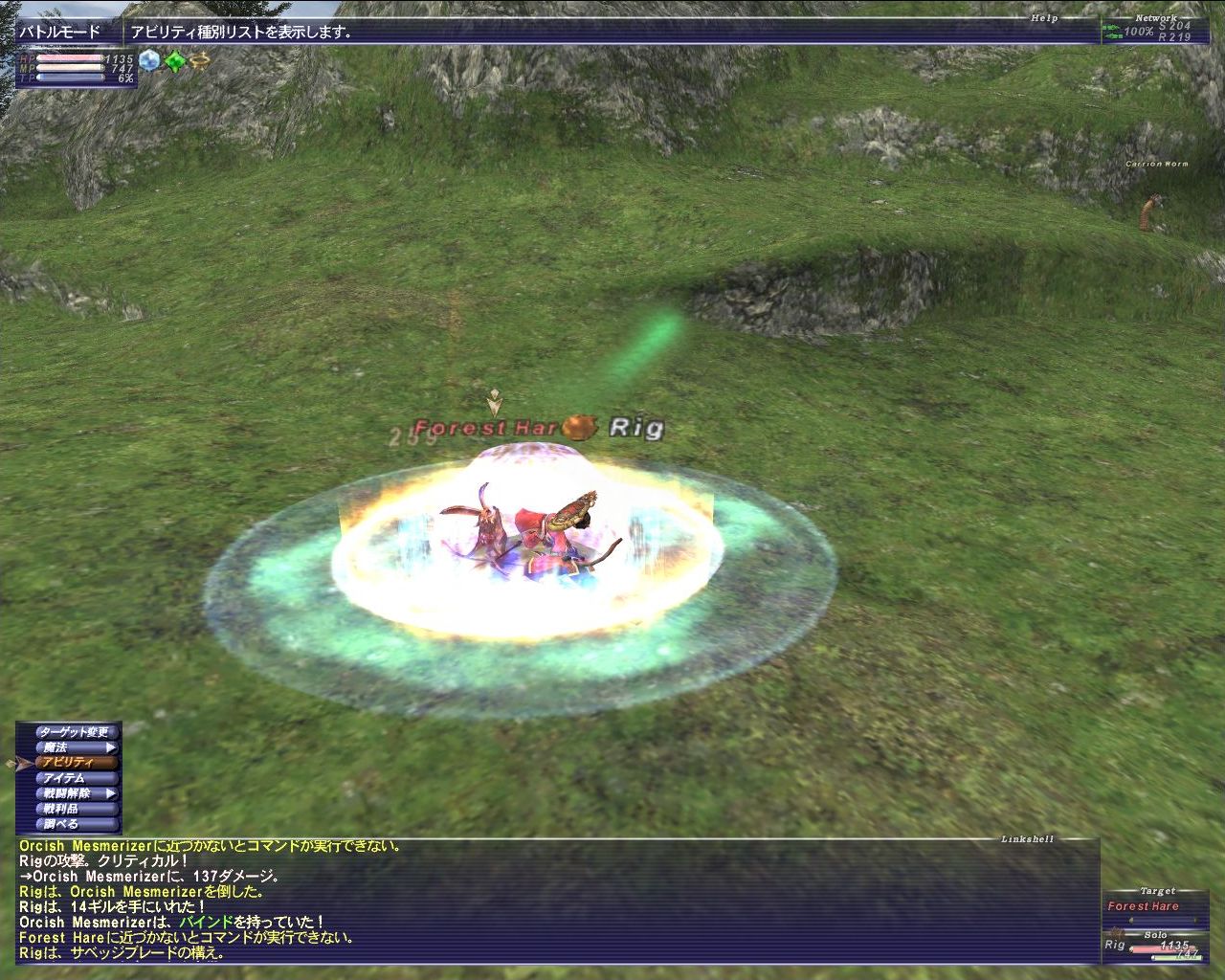 援護&攻撃。雑魚掃除でもNM討伐でも、青魔導士の人が強かった。ディセバーメントっていう青魔法、