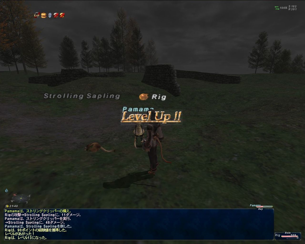 Lv15になってPamama君のHP284。サンドリアに帰る道すがら、なにげにディアクティベートして再びアクティベート。
