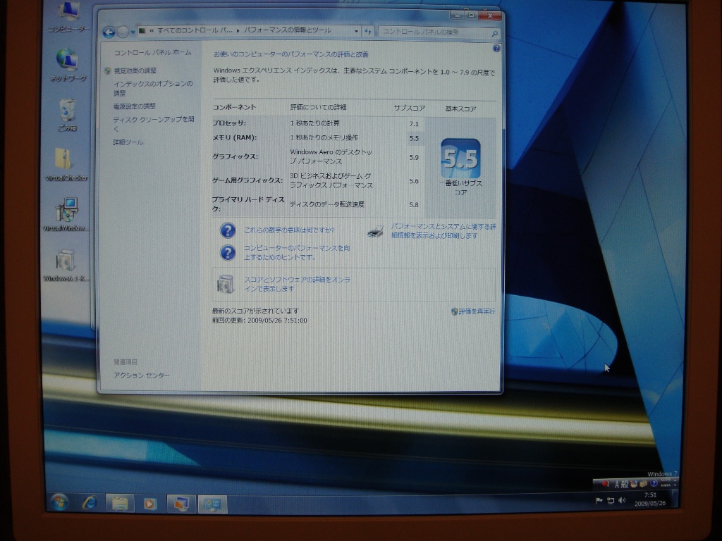 というわけで、Phenom X4 9850BEのPCに元から付いていた250GBのHDDをケーブルだけ外して、500GBのHDDを取り付けました。メモリは2GBなので32bit版のWindows 7をインストール。約30分でインストール完了。