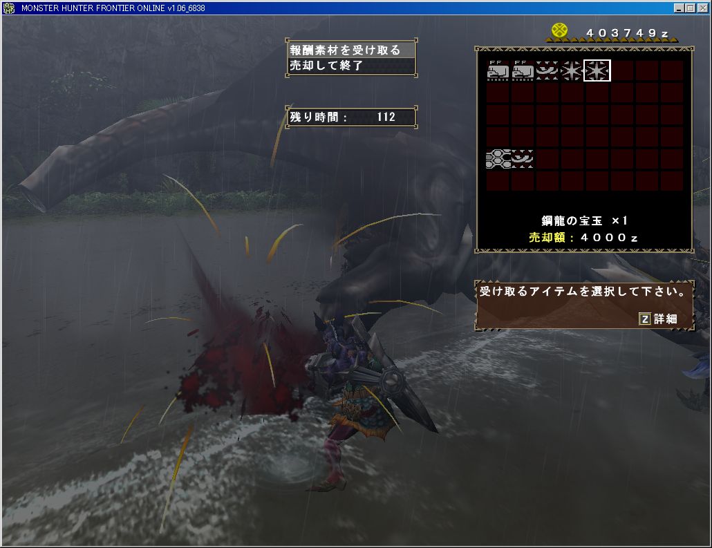 鋼龍の宝玉2つである。なんという運の無駄遣い。でも欲しかったような気がするから有り難く貰っておくぜ!