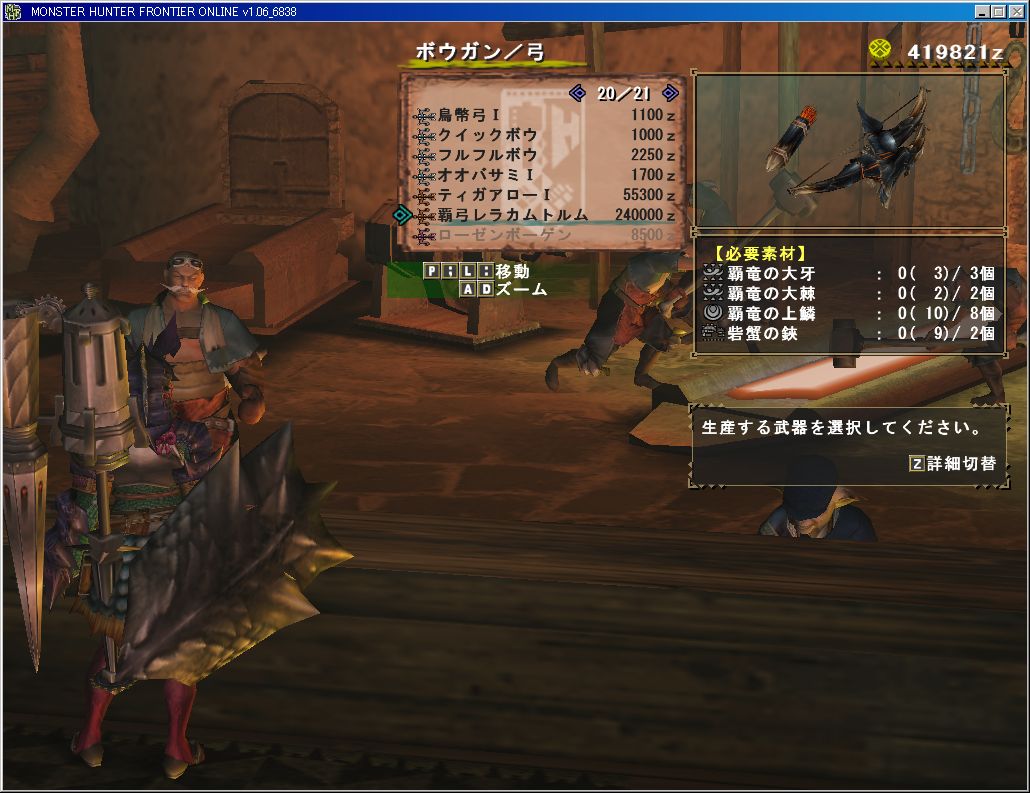 ついにアカムトルム素材で出来る強い弓、「覇弓レラカムトルム」の素材が揃った!作るかどうかはまだ悩み中。
