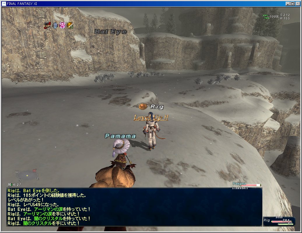 しかし、アーリマンのアイズオンミーが痛い。300近いダメージを食らうので保険でTP取っておかないといけない。マトンはよく眠らされるし。