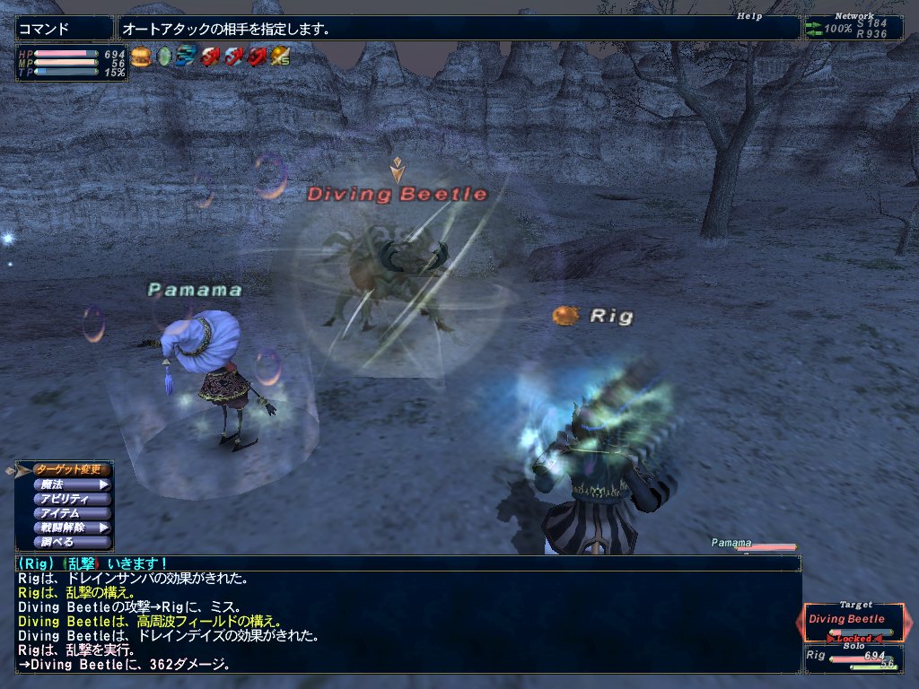 すると、敵レベル44~47の良い狩り場発見。ソロムグ原野〔S〕のカブトムシです。アイズオンミーみたいな痛いWSもないし、視覚リンクするだけのノンアクティブなので狩りやすい。3100/7800くらい稼いで今日は終了。
