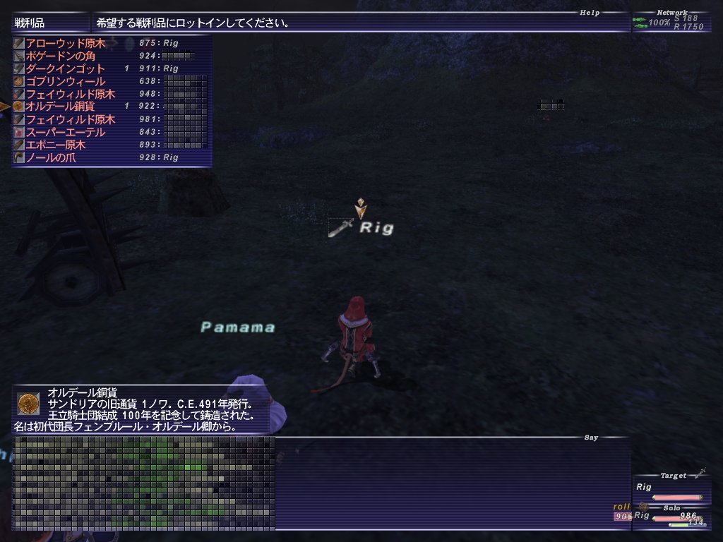 人数も増えてきたので、敵を1匹ずつ抜いて倒す。4匹目くらいの敵を集中攻撃していたら、背後からShadowfang Voidっていう闇エレ軍団が来て、何人か絡まれて死んでました。オークを倒したあと、2匹に絡まれているナイトさんから1匹とって3人がかりで剥がそうとしたけどなかなか剥がれませんでした。ナイトさんにケアルIIIを飛ばすんですけど、ナイトさんは自己ケアルIVでさらにタゲが張り付く悪循環。そこに獣使いさんが参戦して、FlowerpotBenとかいうマンドラゴラタイプのペットをけしかけてタゲを取ってくれたみたいでした。マンドラ2回攻撃でHPも多いらしい。