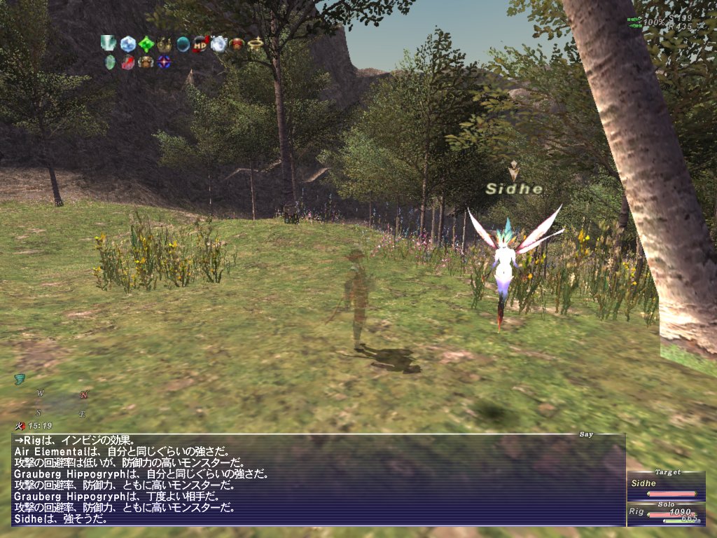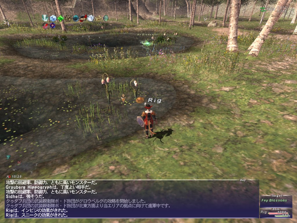 赤にジョブチェンジしてコンポージャーを使って、リレイズと各種強化魔法をかけてグロウベルグを移動。まあ、ヒッポグリフが見破り有りだとしても、結構まばらに配置されていて、後を通り抜ければいいのでどうって事ありませんでした。