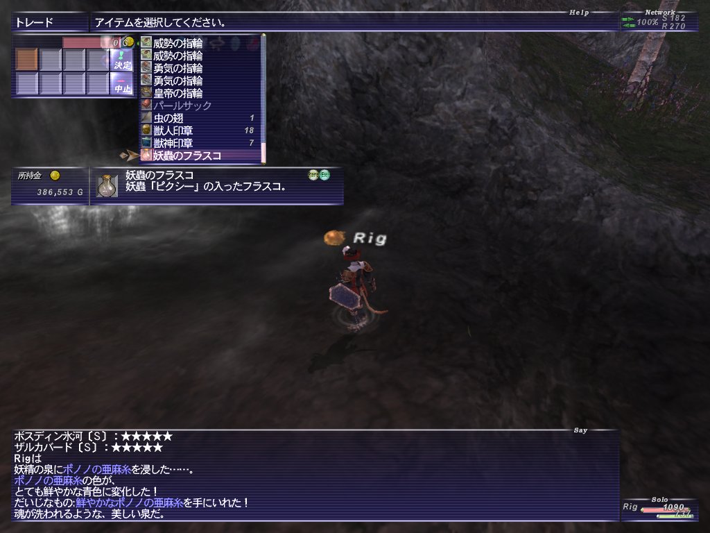 その奥に、「Fay Spring」というポイントがあって、そこに妖蟲のフラスコをトレードすると妖精を解放できました。イベントグラフィックは無かったけど。