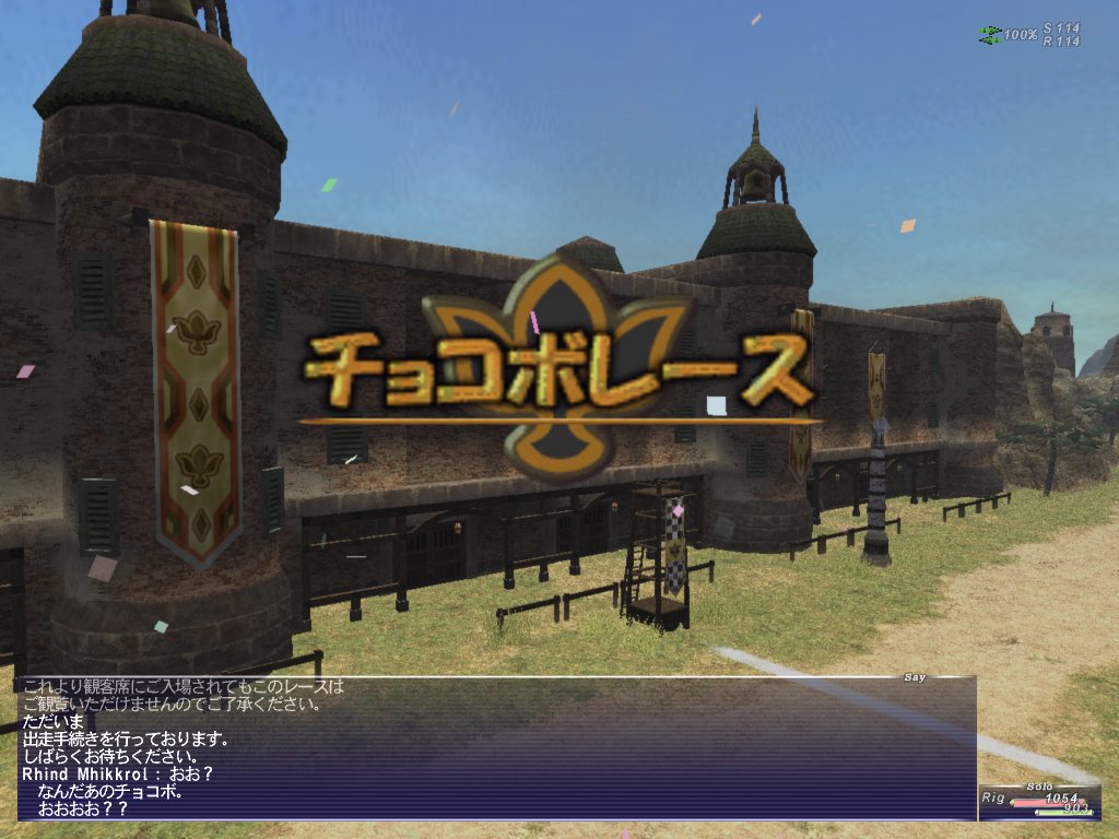 昨日、チョコボレースをやってみました。手持ちのチョコボは足が遅いのですが、出走させてみたら4匹中3位に入って賞金5ギルゲット。何このクソゲー。