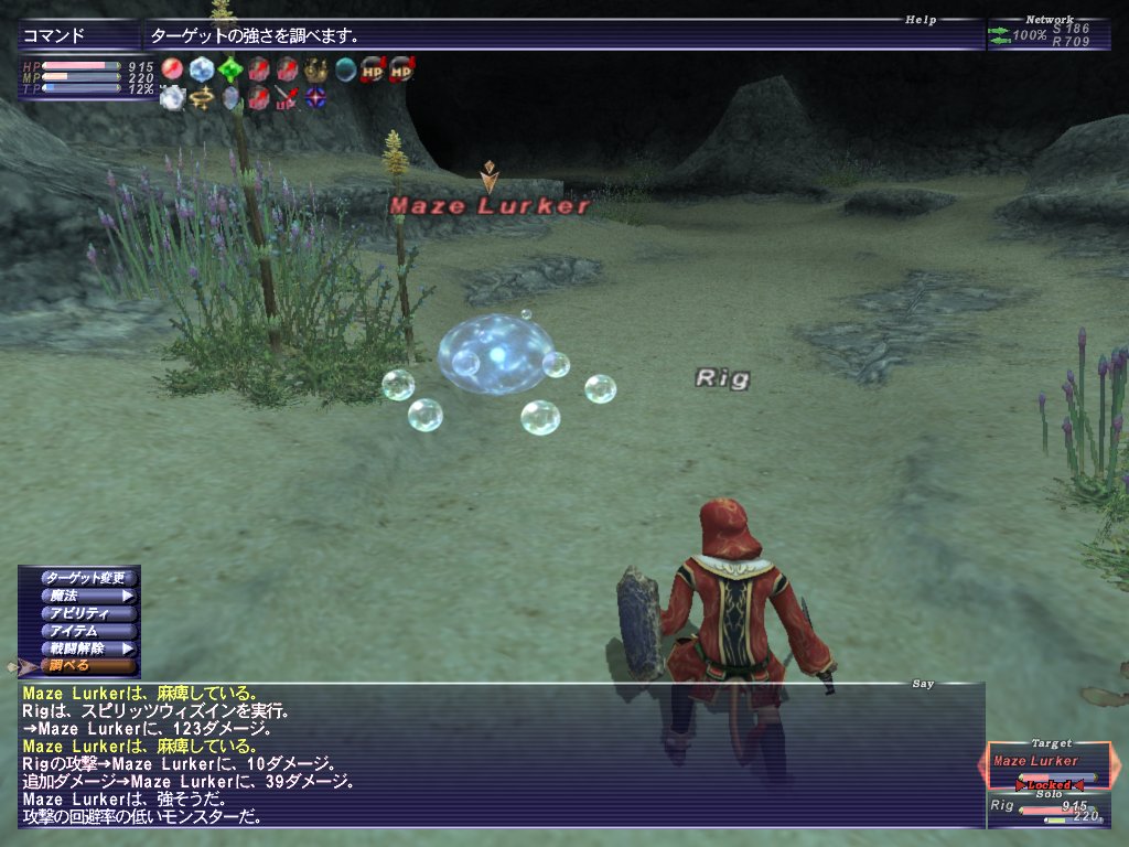 丁度の強さの水エレが2匹いたのでどついて倒しました。3匹目を釣ったら妙に強い。強さを確認すると強でした。なんとか勝てましたが。3匹倒した段階で残り11匹とか言われたので、メイズコンパスだかを使って帰ってきました。