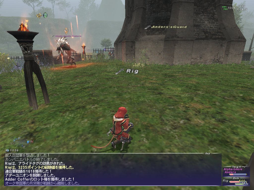 カンパニエ。ブンカール浦でカンパニエ。Anders(月牙部隊ボス)とOrchish Strongman(ベルフリーから沸く援軍)が暴れていたので、ストロングマンを殲滅>ベルフリー破壊>Andersにおいすー。