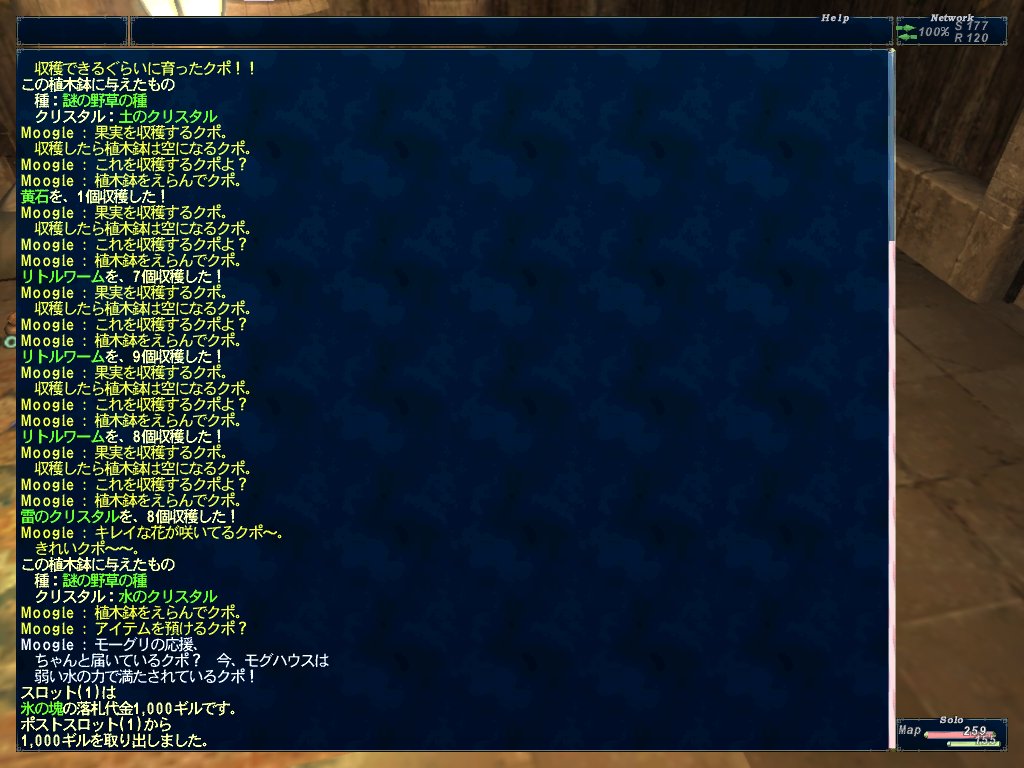 ヴォンプカロット収穫を夢見て謎の野草の種+土のクリスタルで育成していた9鉢ほどを今日収穫しました。結果はリトルワーム大量。ヴォンプカロットは1つも収穫できませんでした。ヨヨヨ。