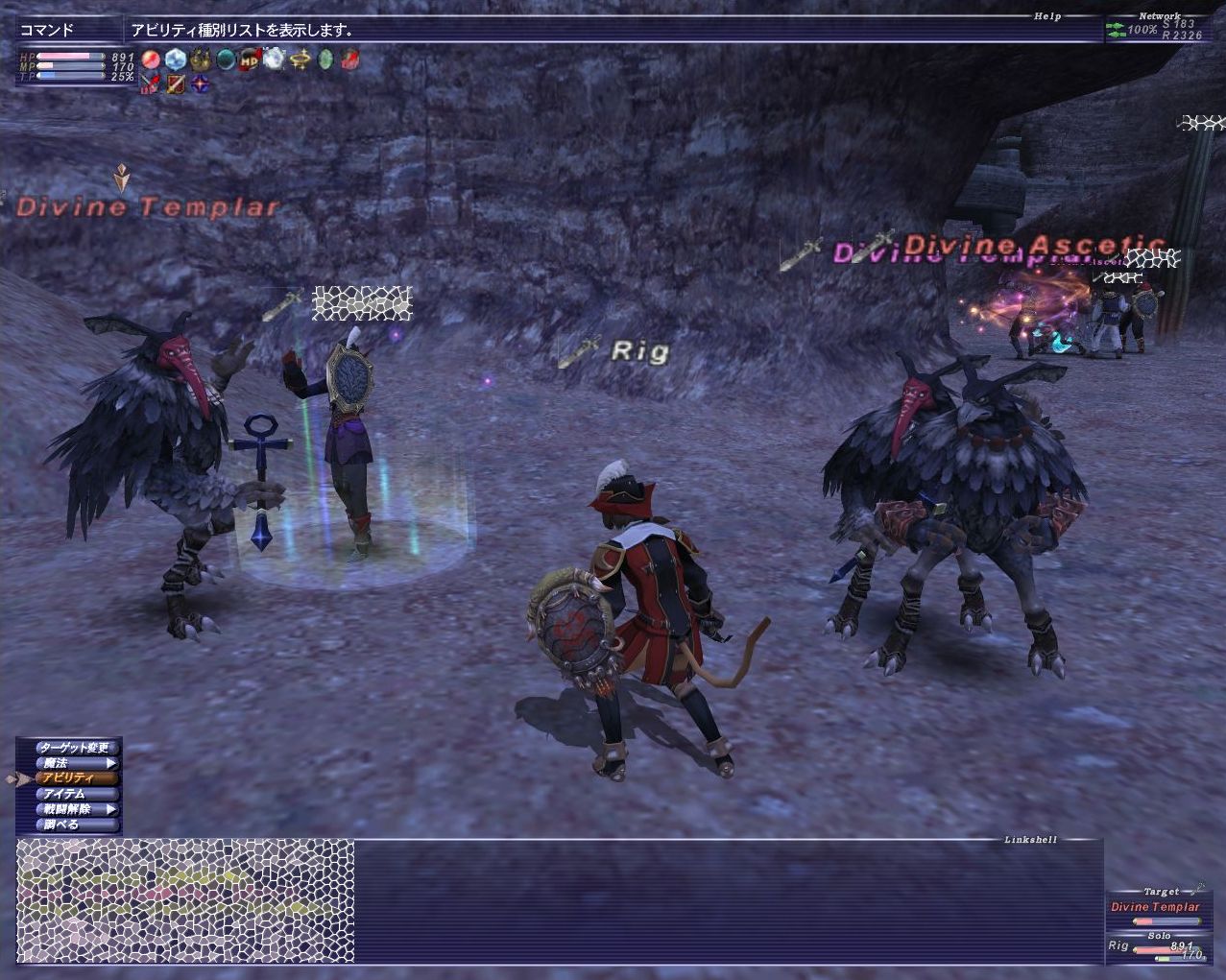 この後、各所で個別撃破が終わったPC群が駆けつけてくれて3対12くらいで楽勝でした。ケアルくれた人ありがとう。スリプルIIを8回くらい使った気がする。