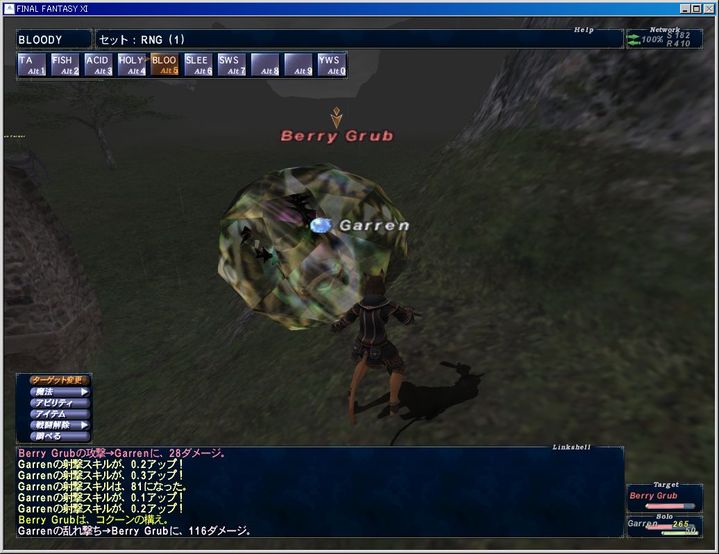 Lv31まであと少しだったのでロランベリー耕地でFoVをやる。蜂と芋虫をどつき回してLv31になる。丁度の芋虫に乱れ撃ちしたら4回連続スキル上がった。ウマー。