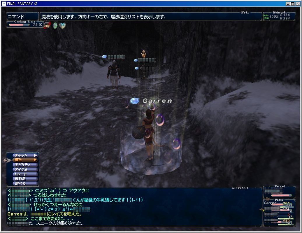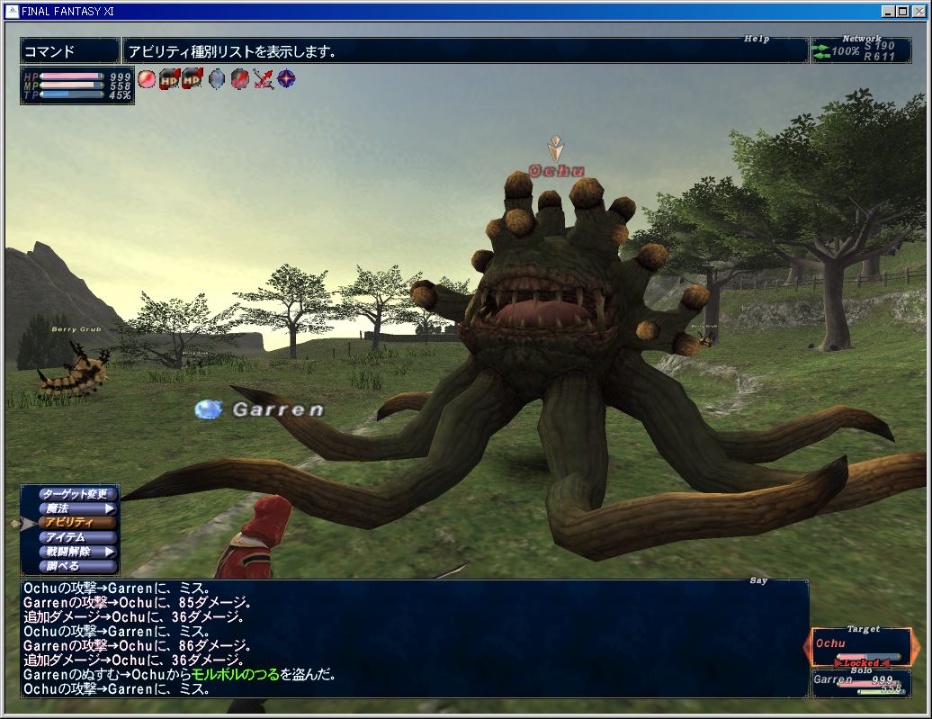 で、狩りも終わって帰る段階になったときうっちゃんがとんずらでジュノ方面に駆けていったんだけど、道中でウェポンに絡まれてジュノまであと1歩の所で死んでた。