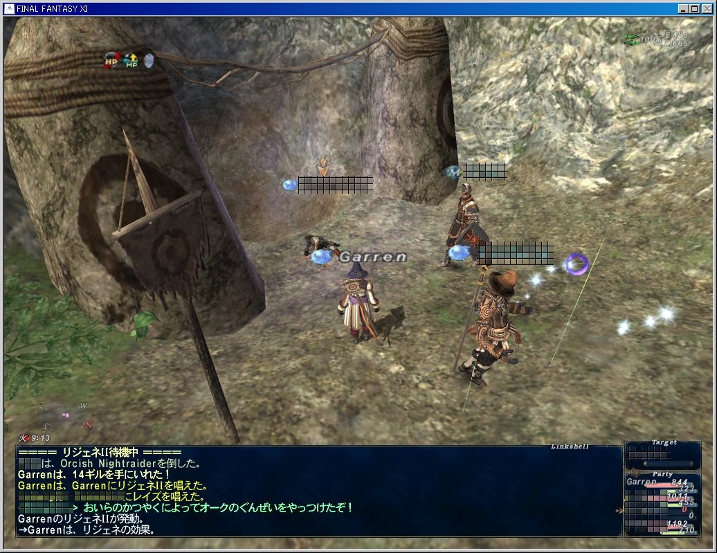 最後にベドー。クゥダフの呪符とクゥダフのト占甲だかをゲットして一旦ジュノに戻って再びベドーに来る。再びベドーでトレイン発生。ツンデレさんがエリチェンしたら残ったクゥダフが私に絡んできた。するってぇと、なにかい?私がエリチェンすると残ったクゥダフがあいびーたんに絡むのかい?