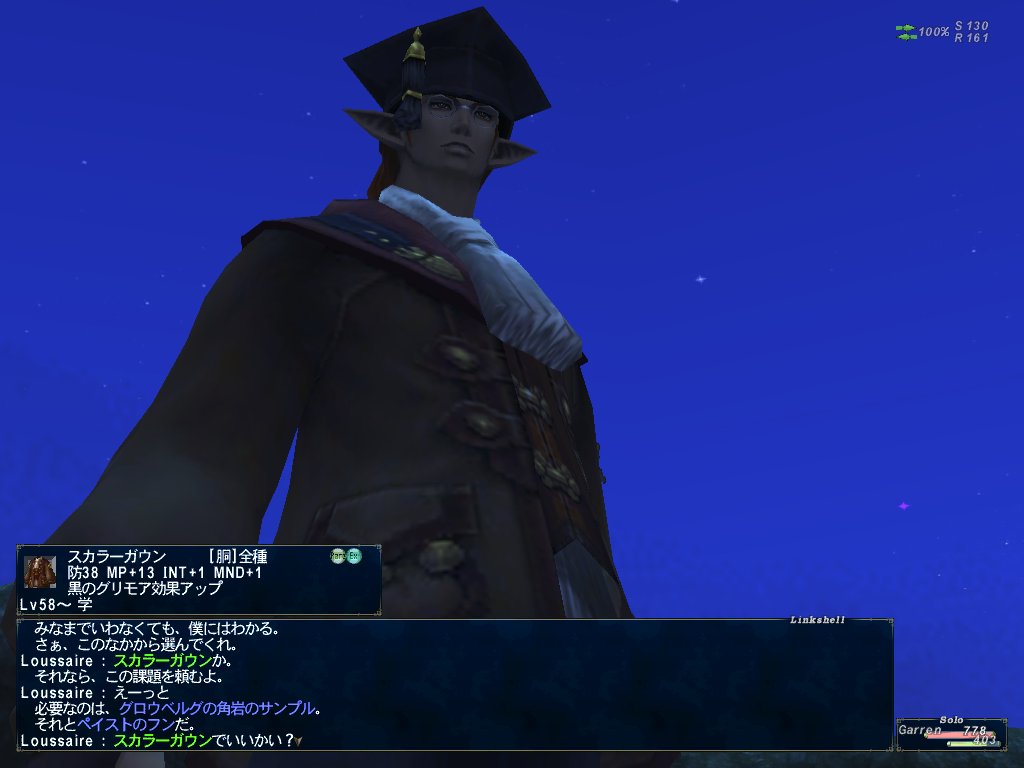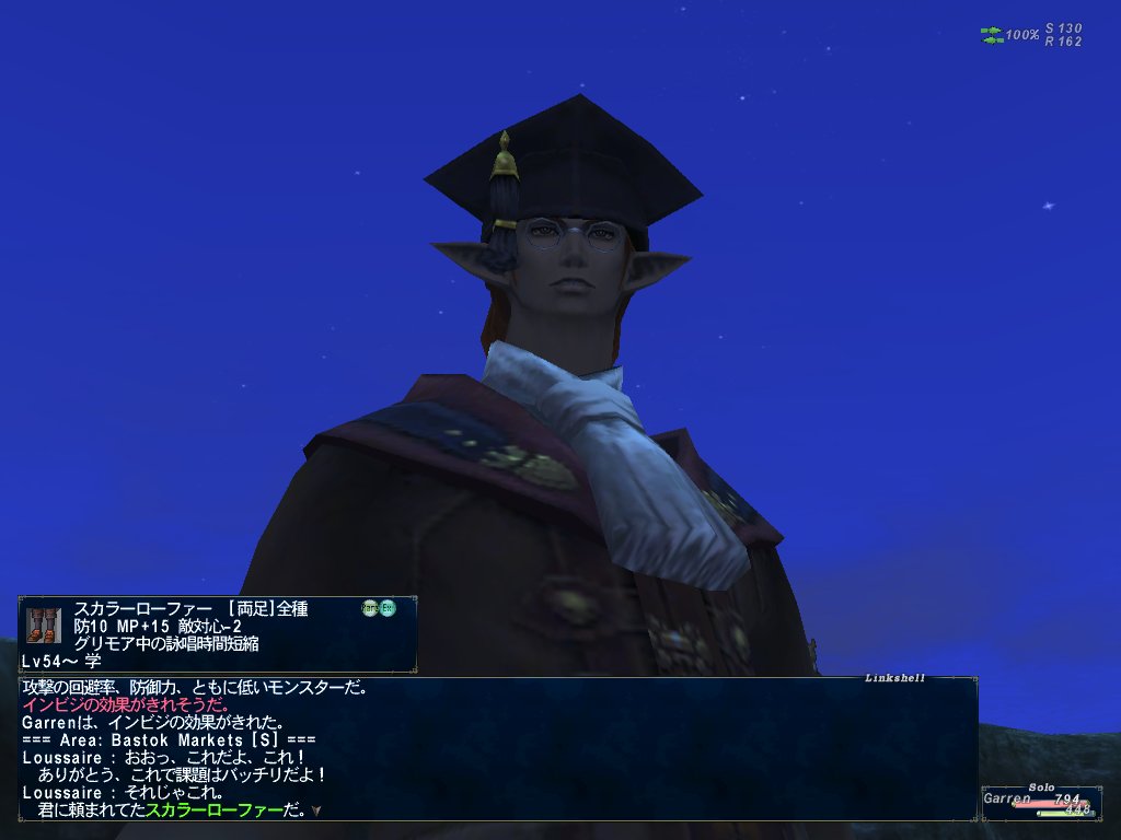 バストゥーク商業区〔S〕に戻りLoussaireに話すとイベント、スカラーガウンを入手。