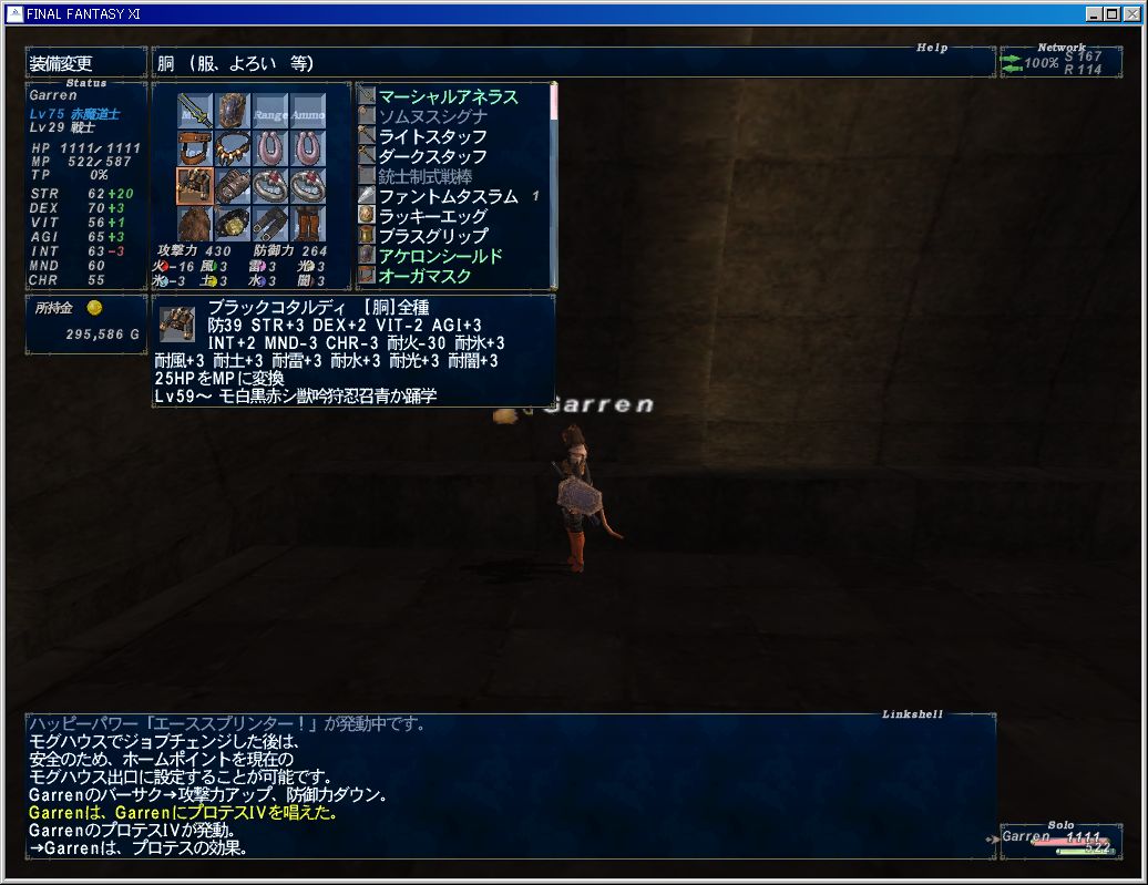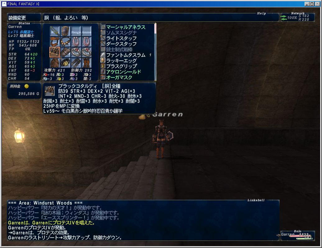その後唐突に赤魔道士Garrenの攻撃力を上げたくなった。昔買ったオーガ装備とかタイガートラウザとかを装備して、サポ戦士とか暗黒にしてバーサクとかラストリゾートとかやってみた。