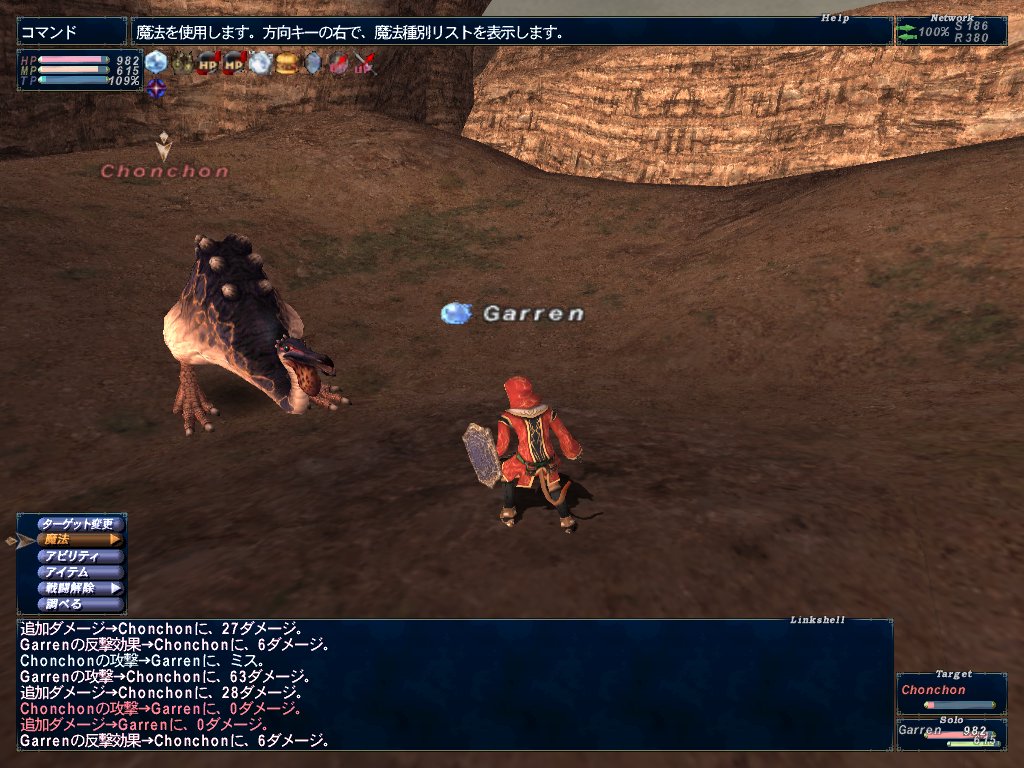 その後暇だったのでメリファトNMを張り込む。ライバルは1人。竜騎士/狩人。どうやって敵を釣るんだろう…。ジャンプ?まあお互い動きあって牽制しあっていたけど、敵が沸くちょっと前にその人居なくなった。ログアウトしたっぽい直後に私が狙っていたスペースにChonchonが沸きました。おいすー^^