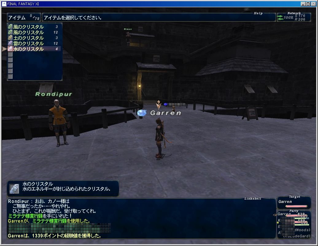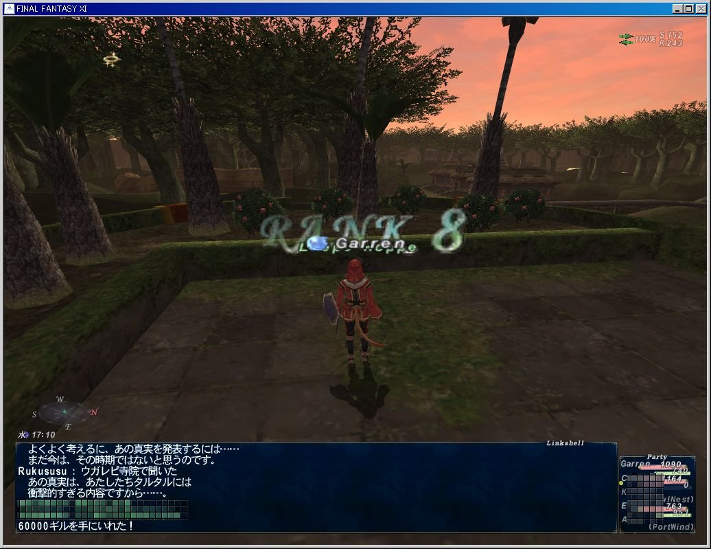 昨日はウィンダスミッション7-2「蘇る神々」をやりました。ウガレピ寺院でトンベリNMを倒して「呪われたカギ」をゲットして、同じエリアの(J-6)にあるGranite Doorに呪われたカギをトレードしてイベント。ウィンダスに戻って鼻の院のリーペホッペに報告して終了。ウィンダスランク8になって6万ギルの報酬もゲットしました。