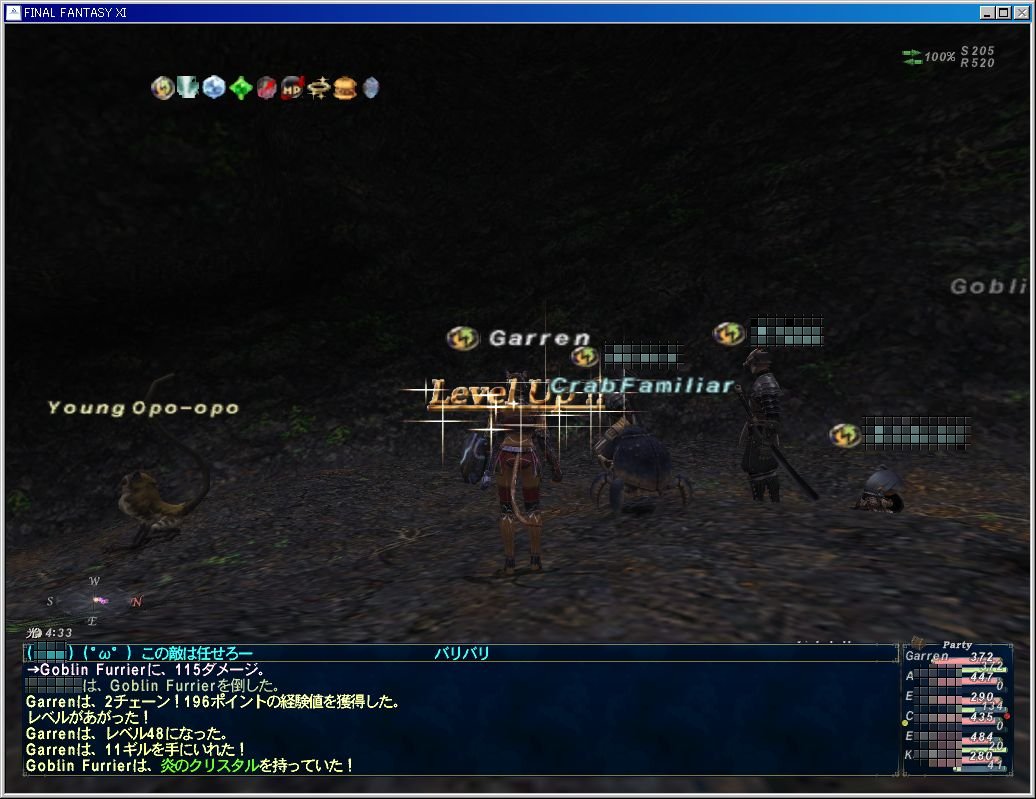 うっちゃんがタル黒魔道士だったんだけど、ストーンIIでゴッツリ削ってた。本人はレジレジだーと言っていたけど、ゴブリンのHPゲージがゴッツリ減っていたような気がする。