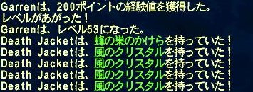あと、ハチのHPが多いときにファイナルスピアが来ると怖いな!空蝉を貫通して一気にHPが減ってた。そんな狩りを続けて、レベルも53まで上がった。