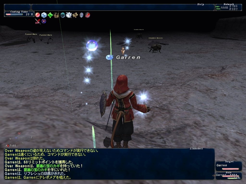 そういえばカギ取りをしてるときにサーチしてみたら、私の他には獣使いLv58位の2人PTしかいなかった。その獣使いの一人からレイズ依頼が来たっけな。楽の壺の脇で死んでた。魔法唱えて反応されたんだろうか。