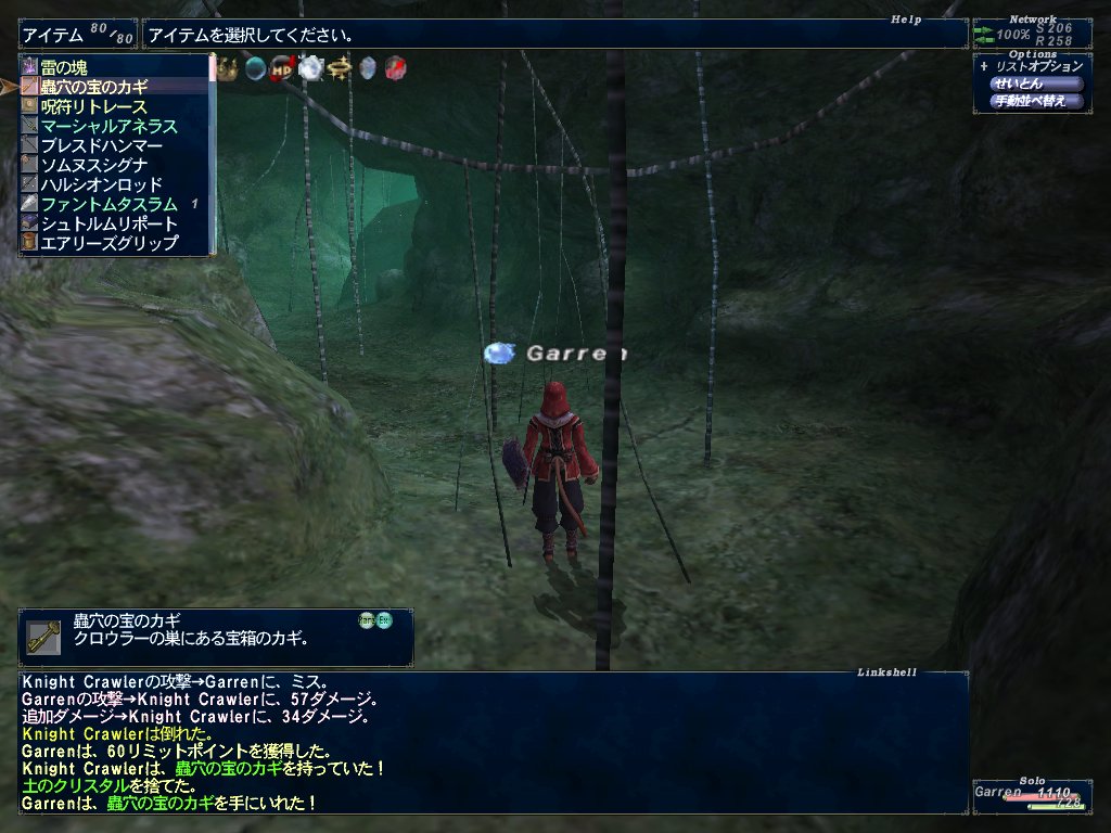 次はクロウラーの巣でカギ取り。ここではヒーラーパンタロンが手に入る予定。ドーナツ広場の先のカブトムシとかサソリとかKnight Crawlerを15匹ほど倒して宝のカギをゲット。