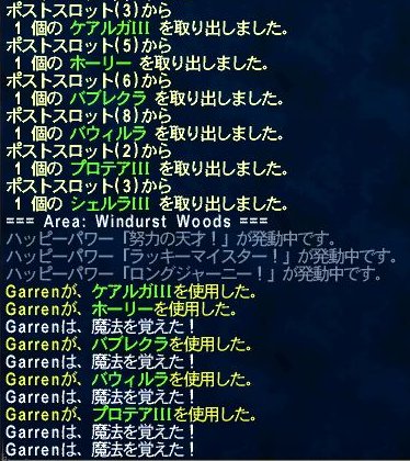 また、最近は急に白魔道士のレベルが上がったので、覚えていない魔法もいくつかあった。それをジュノの魔法屋で購入して覚えました。