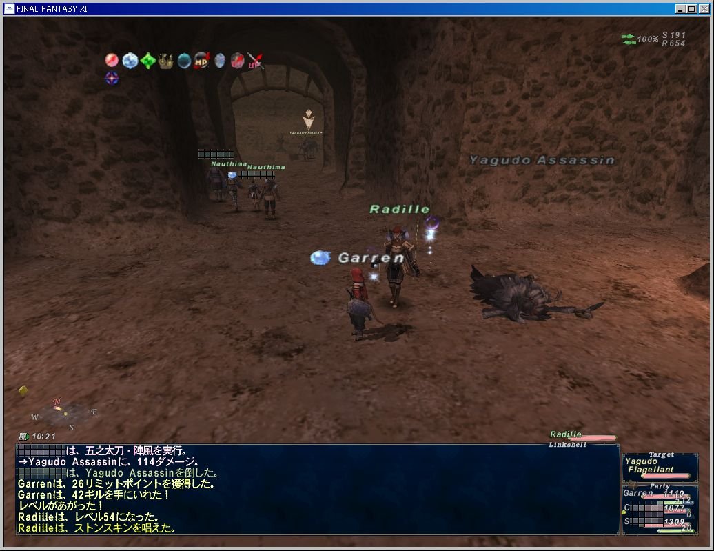 3人ともフェローがエル♀なのである^^ あいびーたんとせいたんのフェローは同名である。Radilleさんはレベル54になった。Assassinクラスのヤグードに結構弱体魔法が入るようになった気がする。