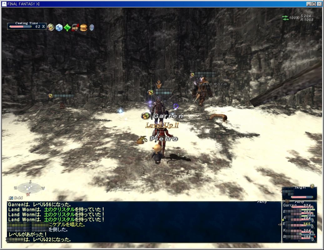 近くで狩ってた他のPTのメンバーもレベルアップしてますね。やっぱみみずは弱くて美味い。夜のバンシーが怖いけど。あとうちむらタルタルが場所を考えずにヒーリングをして2回ほど業者避けのゴブリンに絡まれてました。