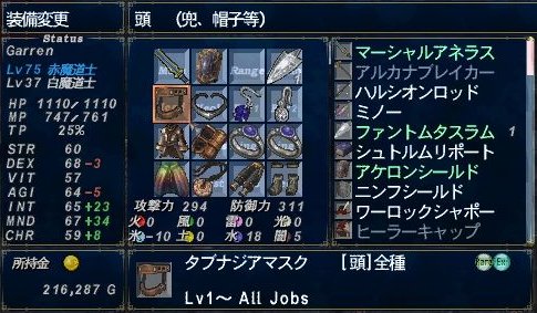 このタブナジアマスクを北サンドリア大聖堂の某NPCにトレードすると、報酬として白AF胴のヒーラーブリオーを貰えます。Lv59なので装備出来ます。くふふ。