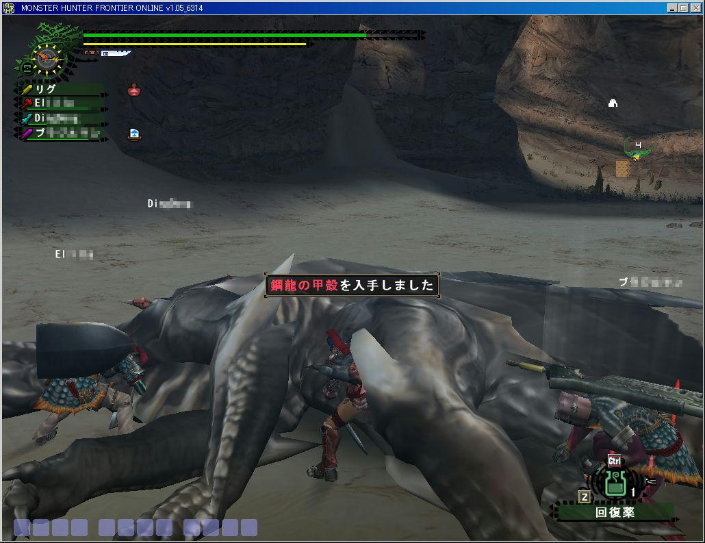 剥ぎ取りで「霞龍の宝玉」ゲット。ウマー。何に使うか知らないけど。