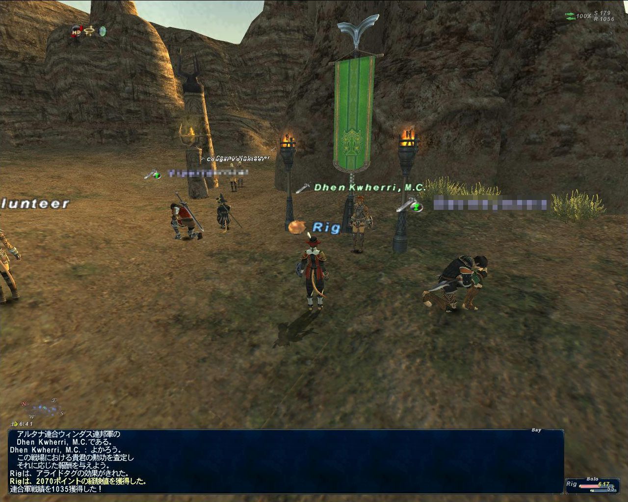 その後、メリファト山地〔S〕でもカンパニエをやる。開始の音楽が鳴ってから爺鯖の前線定位置まで行って待機。