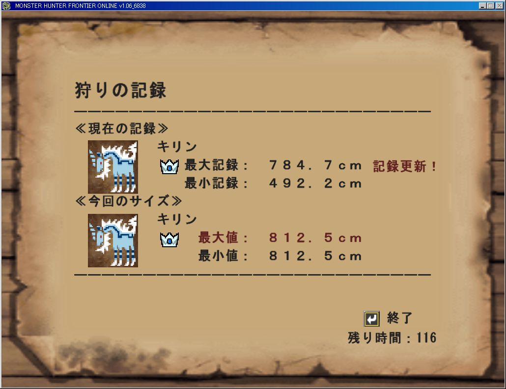 某う゛ぉぐえさんの狩りの記録ではキリンの討伐数142体だそうですが、これが143体目になったようです。