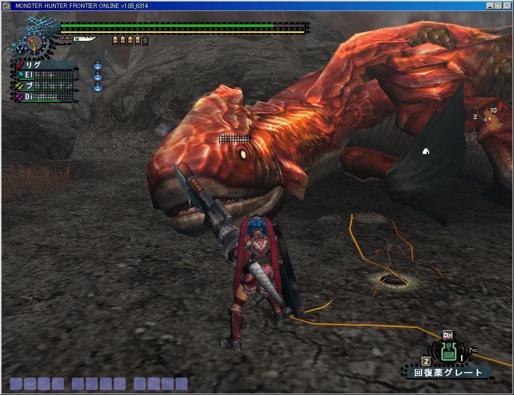 斬り上げが胴体に届かないのでおかしいなぁ?と思いつつ捕獲で狩り完了。さすが捕獲道具を持ってるエリンギさん