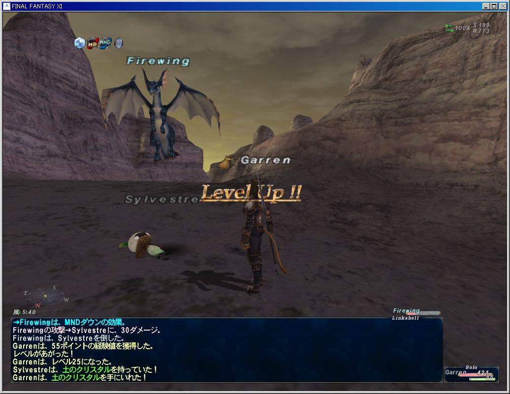 竜騎士Lv23@300弱で始めてFoV1ページ目を2回ほどやってからZuとかゴブリンとかマンドラを倒しまくってLv25になりました。