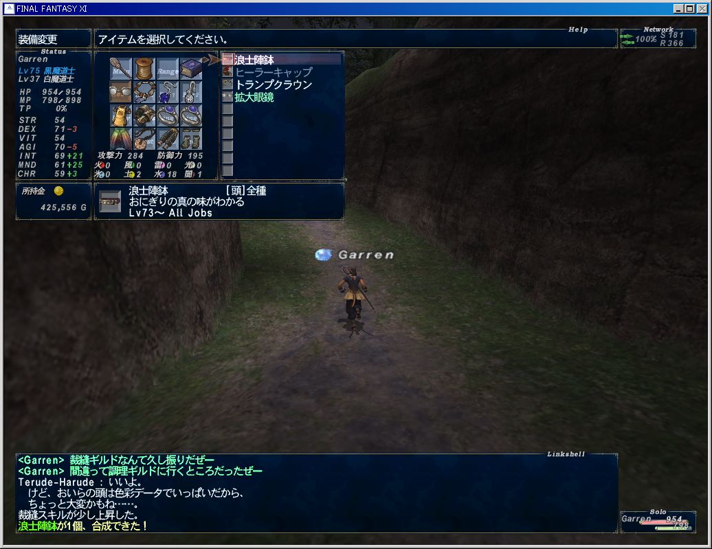 私の裁縫スキルは91.8。職人装備2ヶ所で+2、あとは合成サポートで+1して94.8なので合成は95%の確率くらいで成功するはず。依頼された合成は失敗してロストすると悲しいので緊張するぜー。