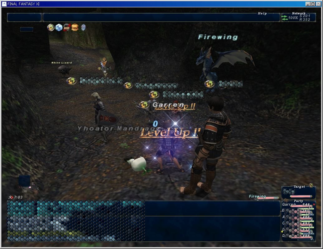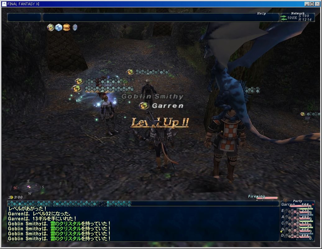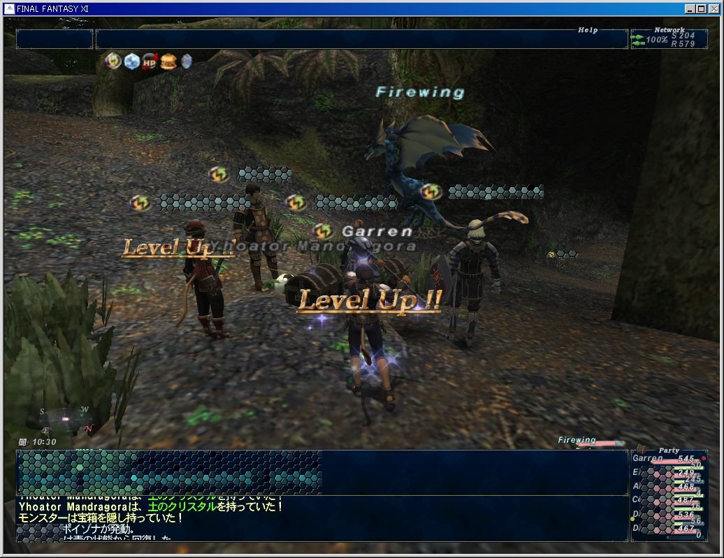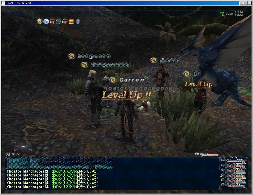 Lv31、特に何も無し。このへんでトカゲを釣ったら奥にも居てリンクして、アビ使いまくって生き残った気がする。記憶にあるのはアストラルフロウと竜剣。インビンシブルを使ったかどうかは不明。あと、マンドラやってるときにゴブが絡んできてもこふわがタゲを取って絶対回避してた気がする。あいびーたんのトランスはいつ使ったか良く覚えてない。