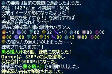 で、錬成スキルが名取になったのでレシピをいろいろ聞いてみた。薫る蟻人汁が聞けたので早速合成してみることにしたら、調理スキルが不足していて合成開始できませんでした。必要調理スキル:高弟らしい。うう。