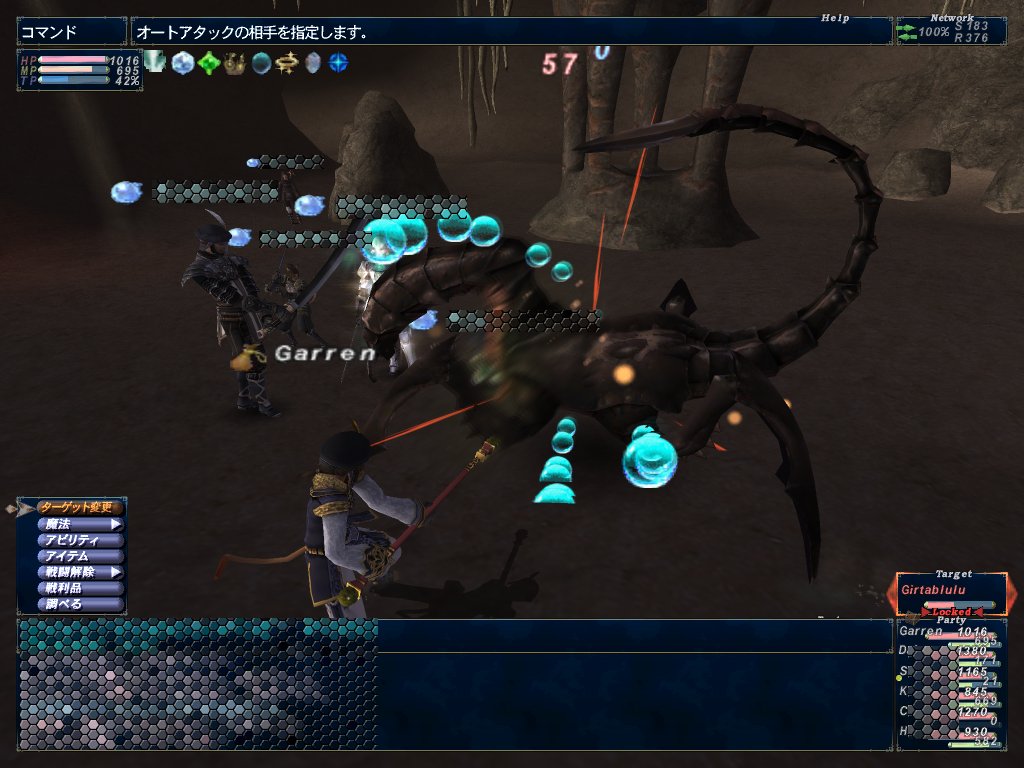 なので入り口の方へダッシュしつつ逃げる。あわよくば逃げ切れるかな?と思ったけど道中のアクティブ蜘蛛にも絡まれまくって総勢4~6匹の敵に追いかけられつつはるさめたんにケアルIIIもらいつつ死亡。入口にほど近い場所だったのでなんとか蘇生できた。