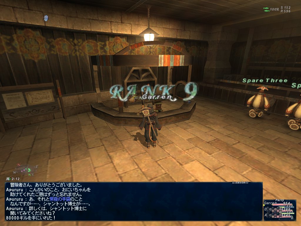 ナイトから離して戦闘して、連続魔もなんとかやり過ごして赤を倒し終わったらナイトの方は消えてた。指定のポイントを調べたらイベントがあって終了。NM2匹倒さなくてもいいのか。で、報告してウィンダスミッションランク9になった。