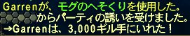モグのへそくり最後の一回を使うのを忘れていたので使う。3000ギルという話題にもならない感じの額でした。